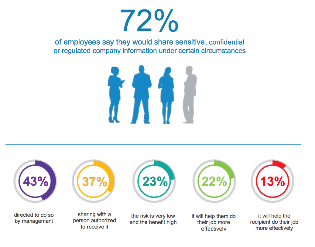 The Dell End-User Security Survey recently found that 72 percent of employees are willing to share confidential, regulated or sensitive data under certain circumstances. It’s not always because they’re careless, and it’s typically not because they’ve gone rogue. Rather, there are simply a number of scenarios in which it makes good business sense to share sensitive data.